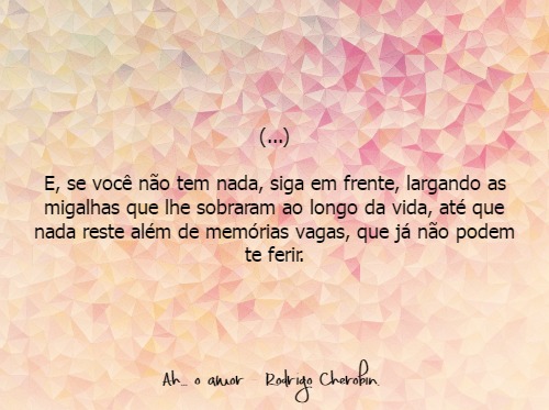 Ainda assim, de forma geral, o livro é agradável. Dá para ler em poucos minutos, pois os poemas são bastante diminutos e competem um pouco com o espaço da arte. Gostei muito do material utilizado na capa e do miolo (ambos com gramatura alta, então, o livro é bastante resistente). Gostei muito da escolha do título, pois conseguiu simbolizar o que o conteúdo traz, que é, de forma rápida, a vida em fragmentos, partes, rememorações.